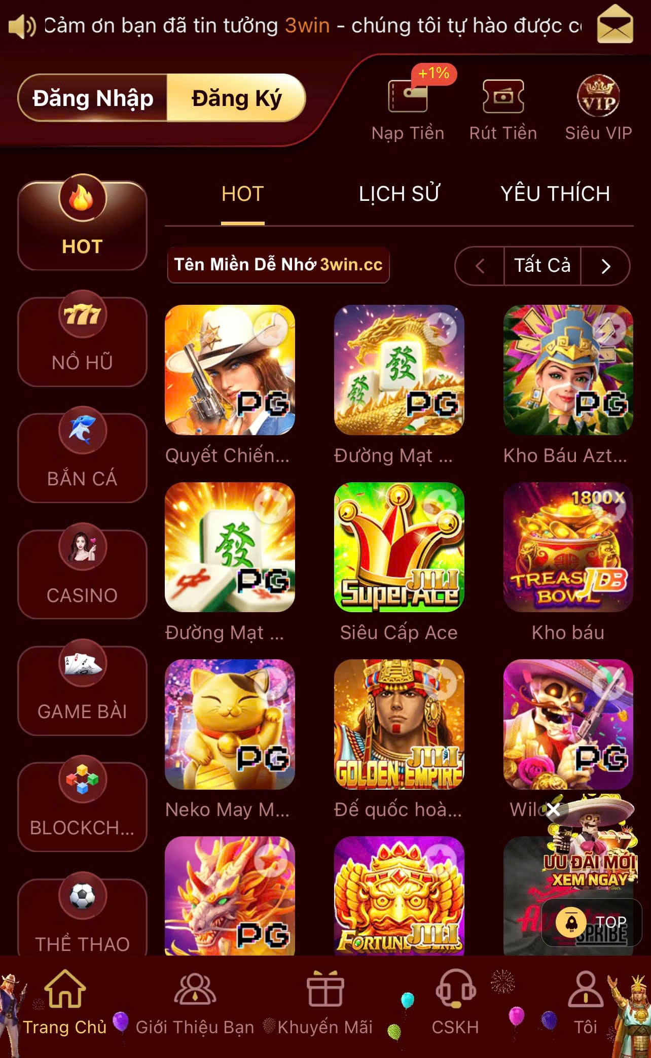Người chơi mới tải app và tham gia nhà cái 3win10.com nhận được Code thưởng 58K hoàn toàn miễn phí. Lưu ý: Mỗi địa chỉ IP chỉ dùng để tạo 01 tài khoản, thông tin không trùng lặp.